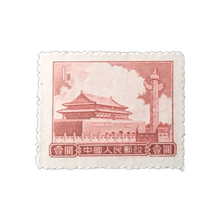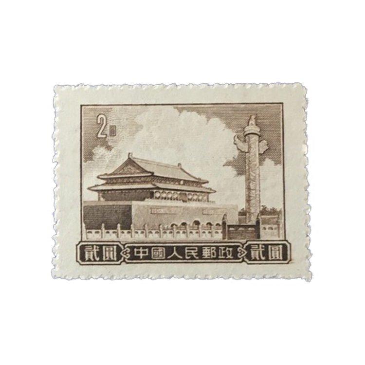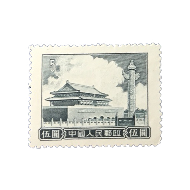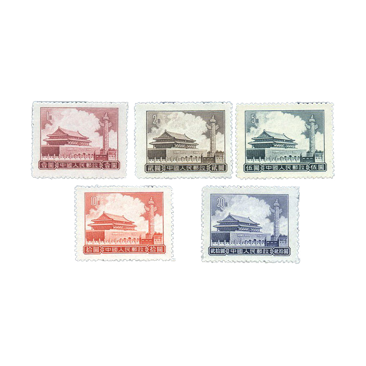 邮电部为了纪念天安门在1955年9月20日发行了普9《天安门图案(第七版)》普通邮票,1套5枚。