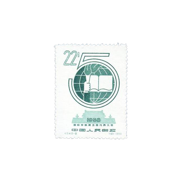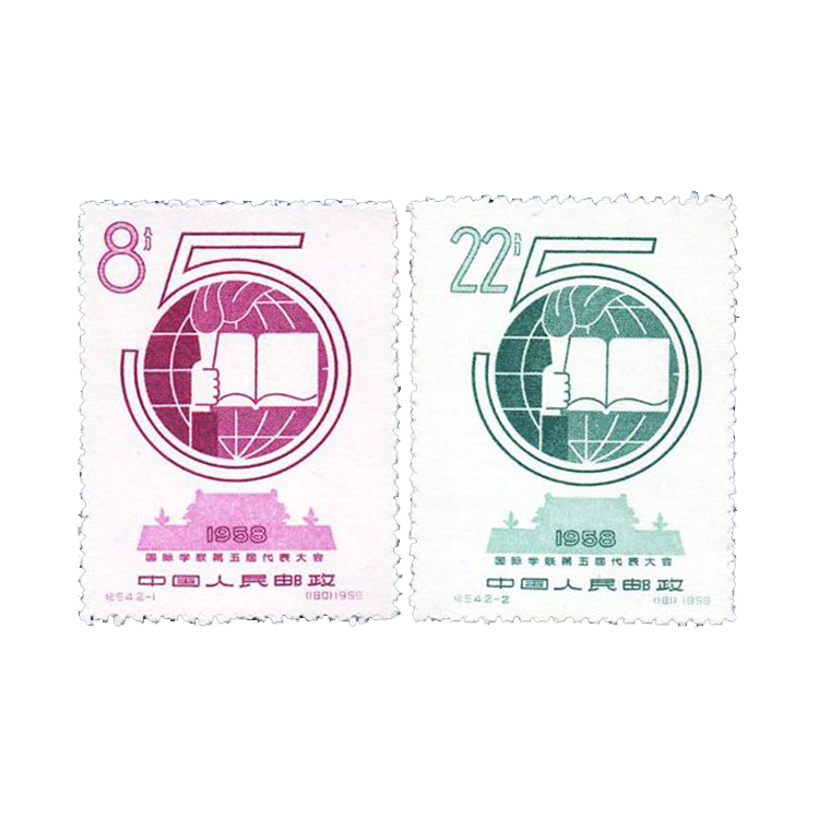 1958年9月4日,为庆祝国际学生联合会的召开, 邮电部发行了《国际学联第五届代表大会》纪念邮票, 1套2枚。