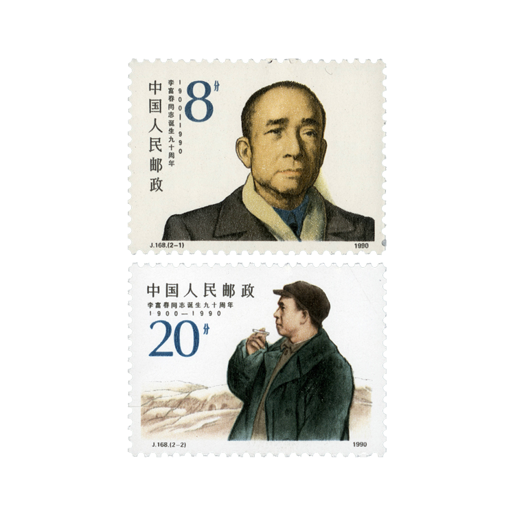 邮电部为纪念李富春同志诞生九十周年,1990年5月22日发行,1套2枚。