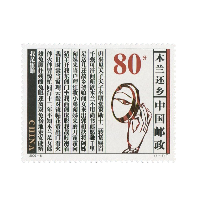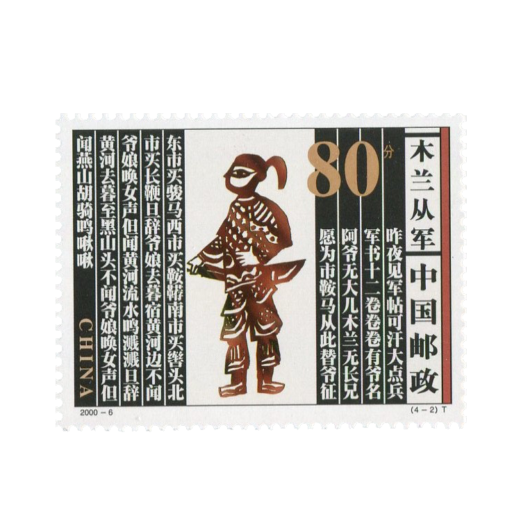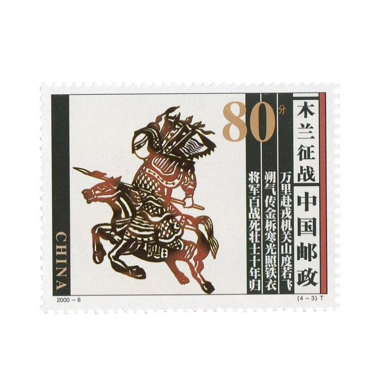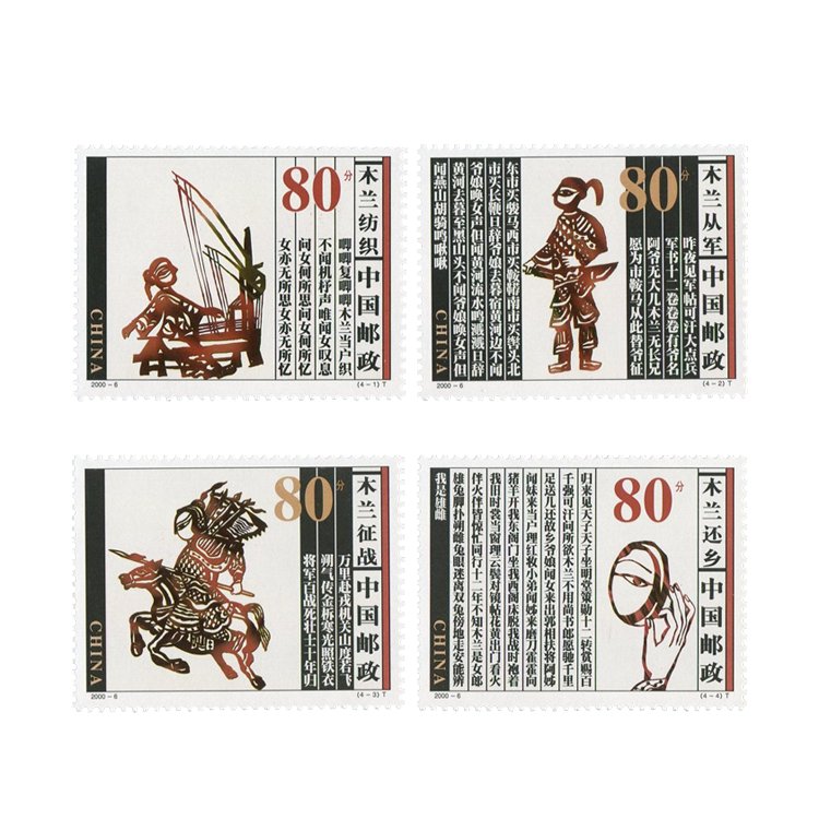 2000年4月30日,国家邮政局发行了《木兰从军》特种邮票1套4枚。