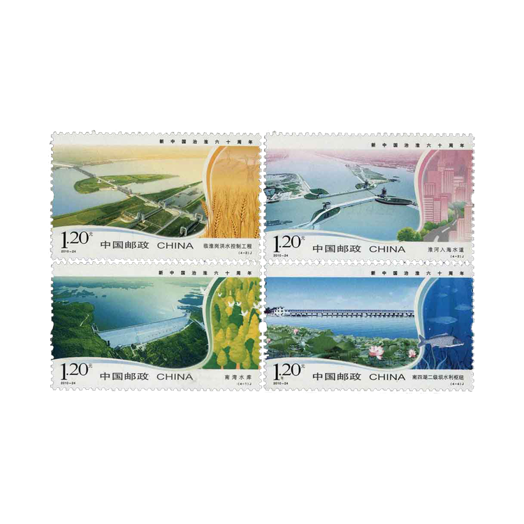 中国邮政2010年10月14日发行《新中国治淮六十周年》纪念邮票,1套4枚。