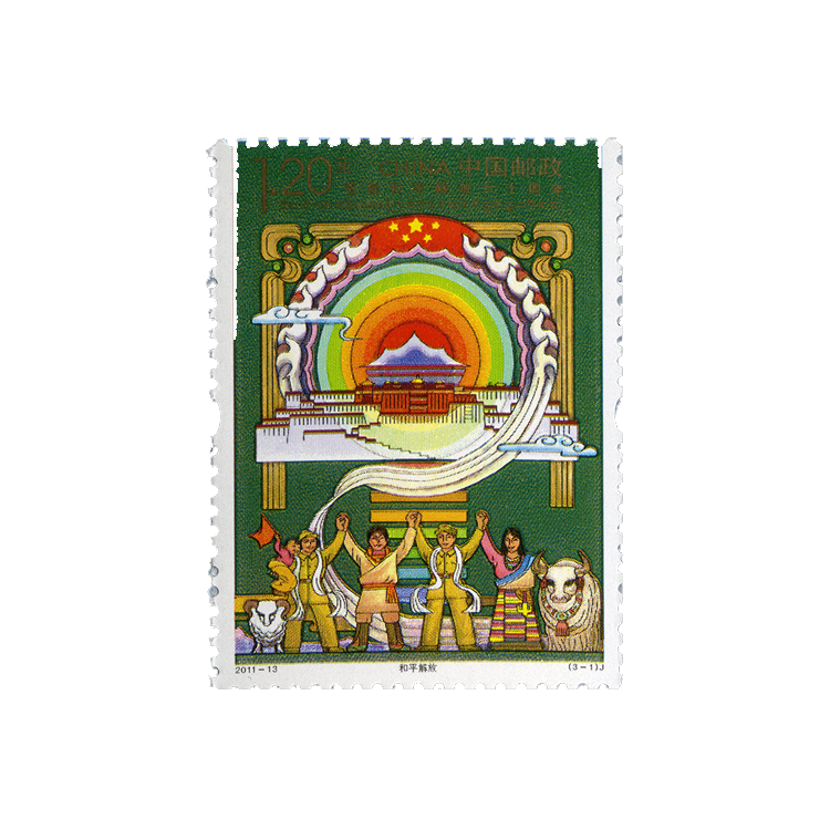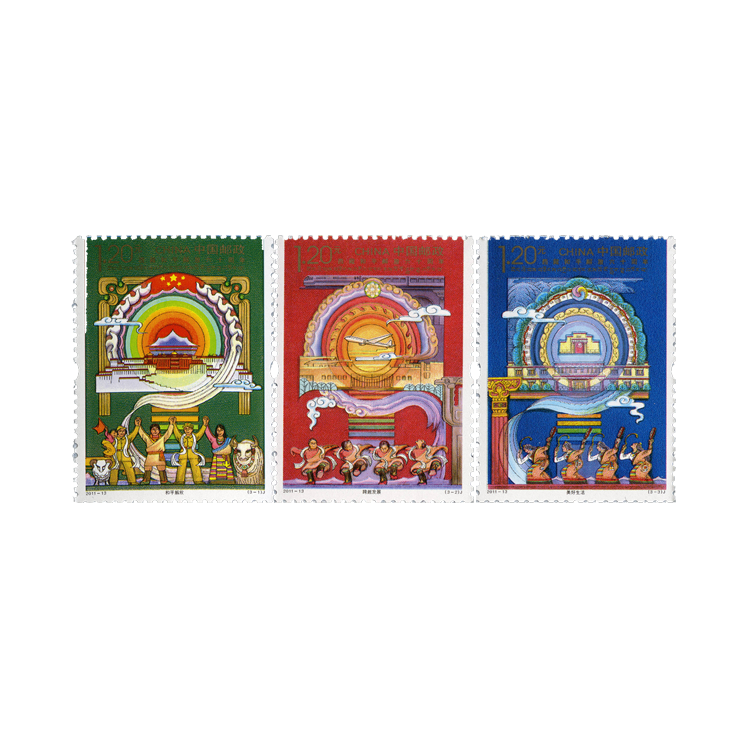 中国邮政定于2011年5月23日发行《西藏和平解放六十周年》纪念邮票1套3枚。