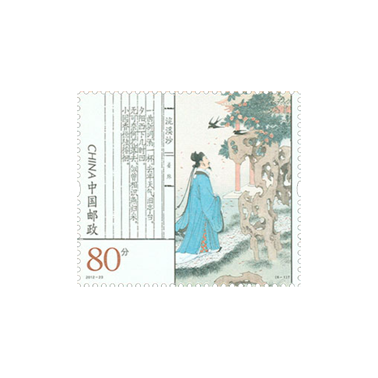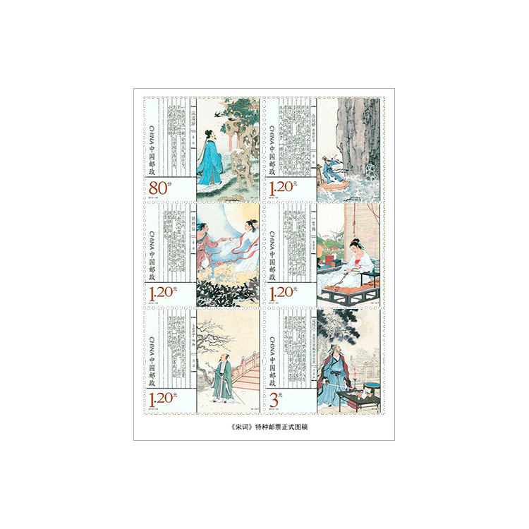 中国邮政定于2012年8月31日发行《宋词》特种邮票1套6枚。