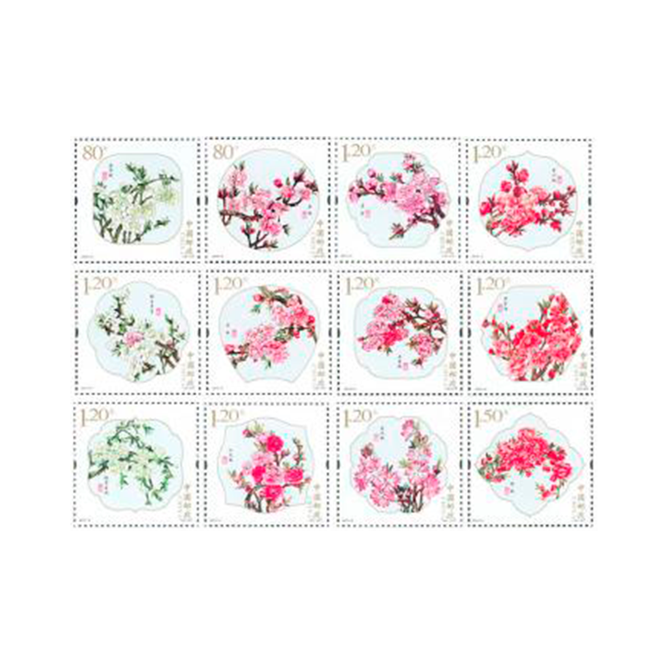 • 中国邮政定于2013年3月16日发行《桃花》特种邮票1套12枚。
