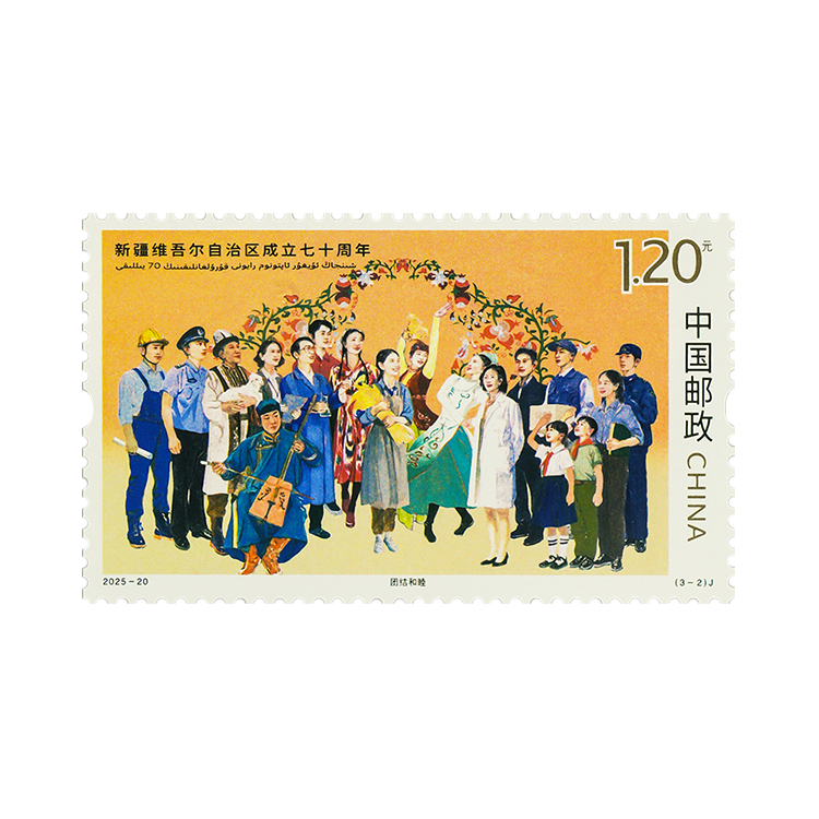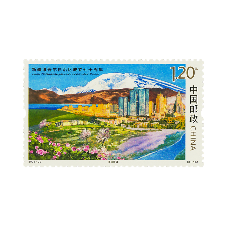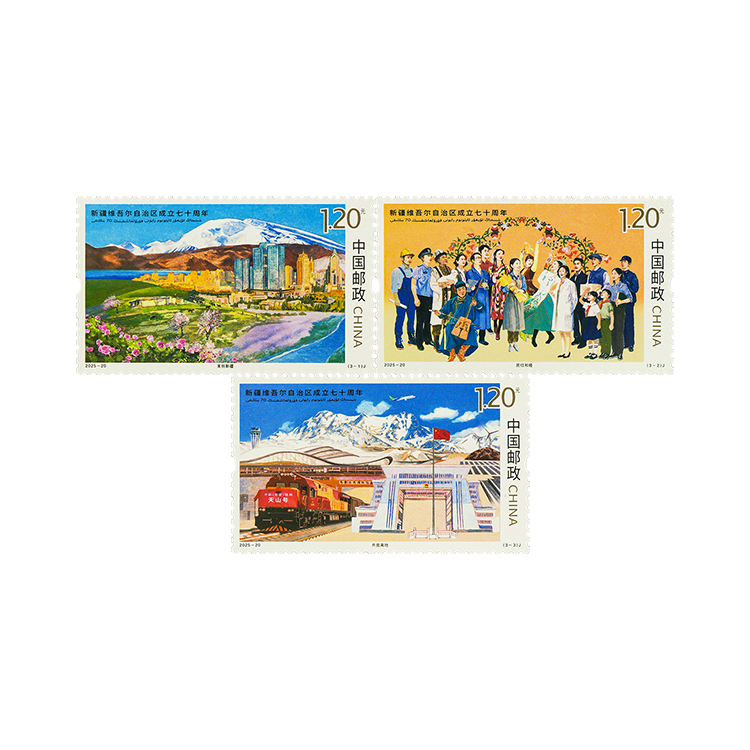中国邮政定于 2025 年 9 月 21 日发行《新疆维吾尔自治区成立七十周年》纪念邮票 1 套 3 枚。