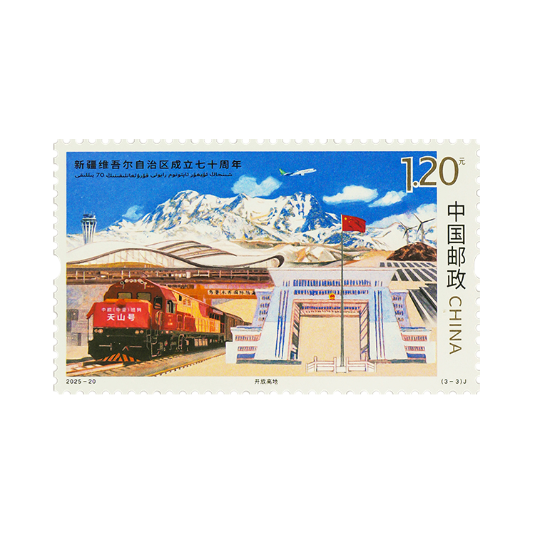 中国邮政定于2025年9月21日发行《新疆维吾尔自治区成立七十周年》纪念邮票1套3枚,邮票图案名称为:美丽新疆、团结和睦、开放高地。全套邮票面值3.60元,计划发行数量为490万套。