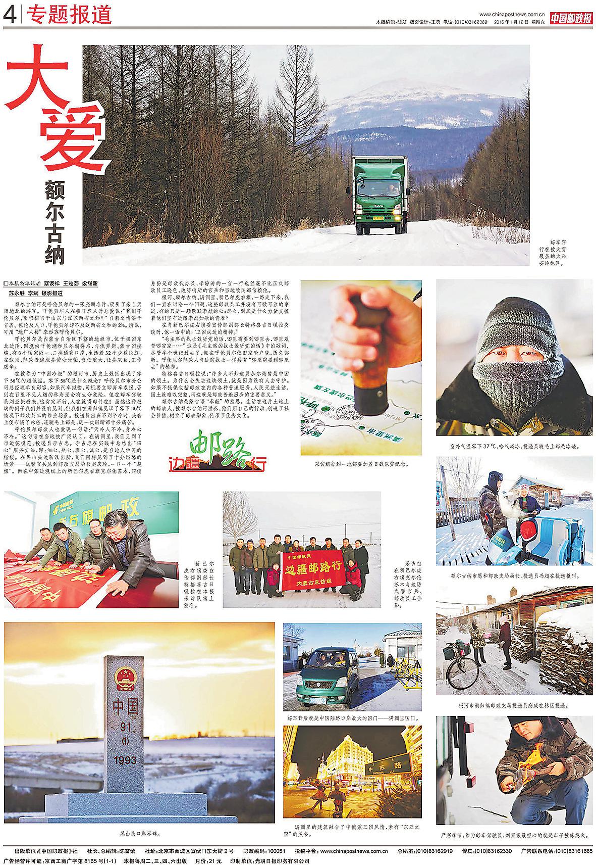 • 北国之“光”白山莽莽,黑水汤汤。2015年,中国邮政报“边疆邮路行”采访组沿着银装素裹的大地、河流,记录下黑龙江邮政人坚守的身影和奋斗足迹。十年间,随着“高质量”成为时代发展的主旋律,全面振兴、全方位振兴的号角响彻龙...