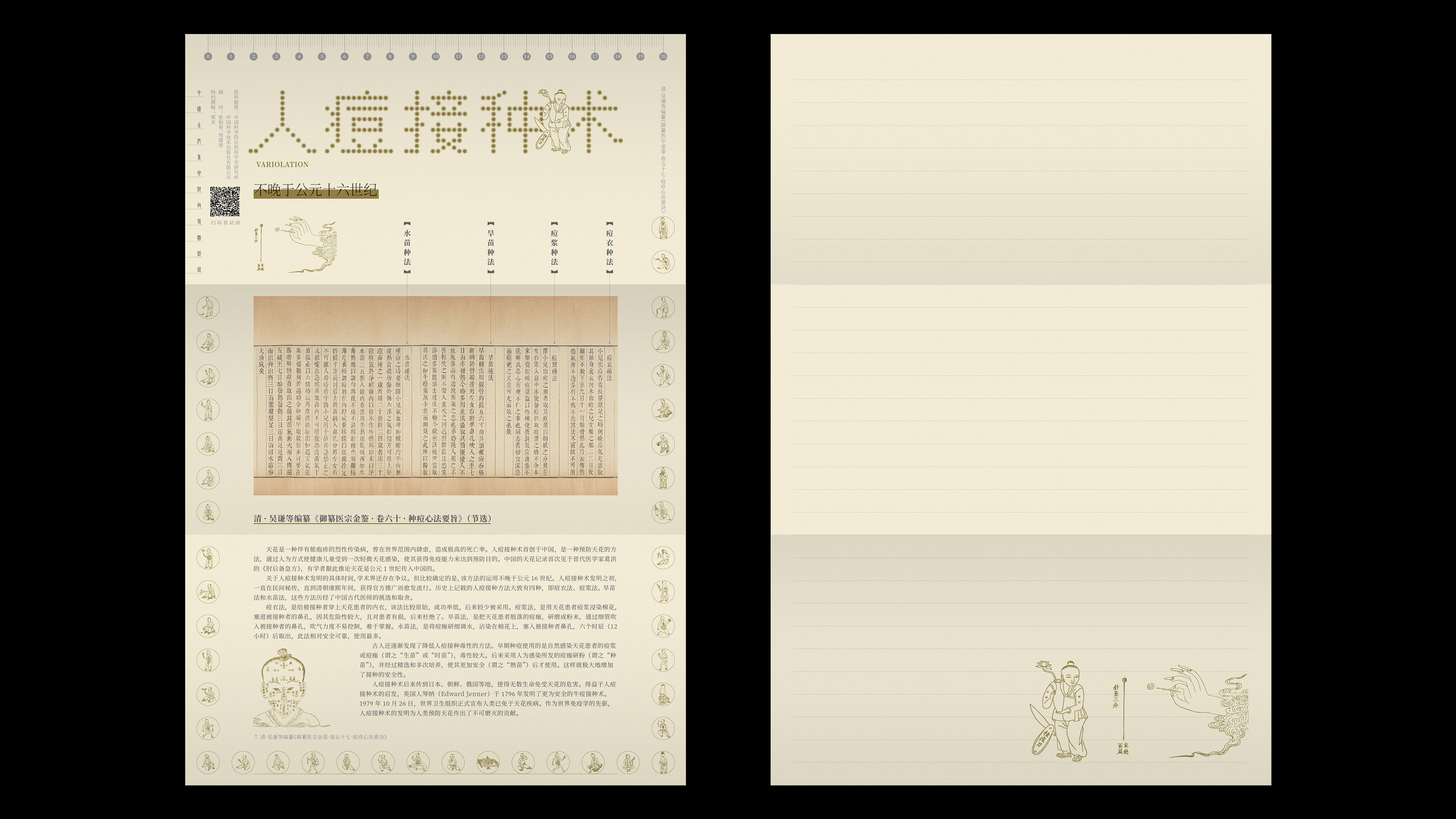 中国集邮有限公司于2023年5月31日发行《巧思天工——中国古代重要科技发明创造》纪念封第一辑共九枚。该枚为巧思天工——中国古代重要科技发明创造纪念封第一辑 《人痘接种术》。 人痘接种术首创于中国,是一种预防天花的方法。公元17世纪中叶,中国已流传有种痘免疫法,分为痘衣法、痘浆法、旱苗法、水苗法四种。它不仅是人类发明牛痘接种术之前预防天花的有效方法,更为重要的是它成为人工免疫法的先驱,开创了后世各种预防疫苗的先河。1979年10月26日,世界卫生组织正式宣布全世界已经消灭了天花病。中国人痘接种术的发明有其不可磨灭的历史贡献。
