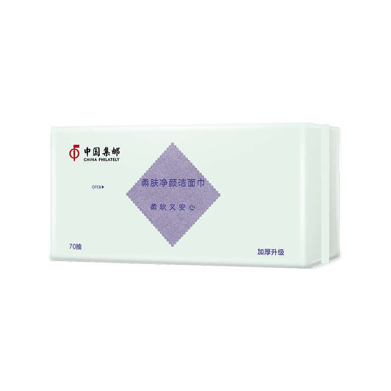 中国集邮有限公司于2023年8月28日发行《中国集邮牌洁面巾70抽1层(单包装)》一包,每包含70抽洁面巾一件。