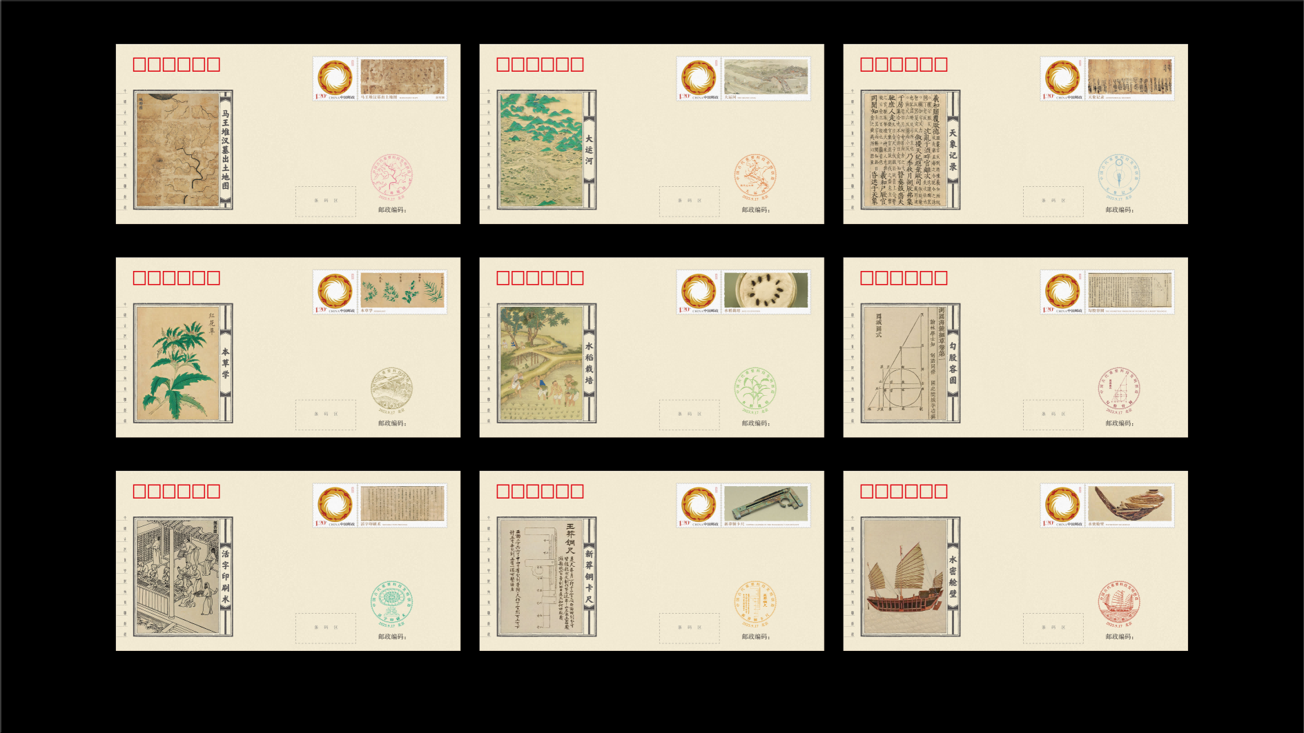 中国集邮有限公司于2023年9月17日发行《巧思天工——中国古代重要科技发明创造》纪念封第二辑共九枚。