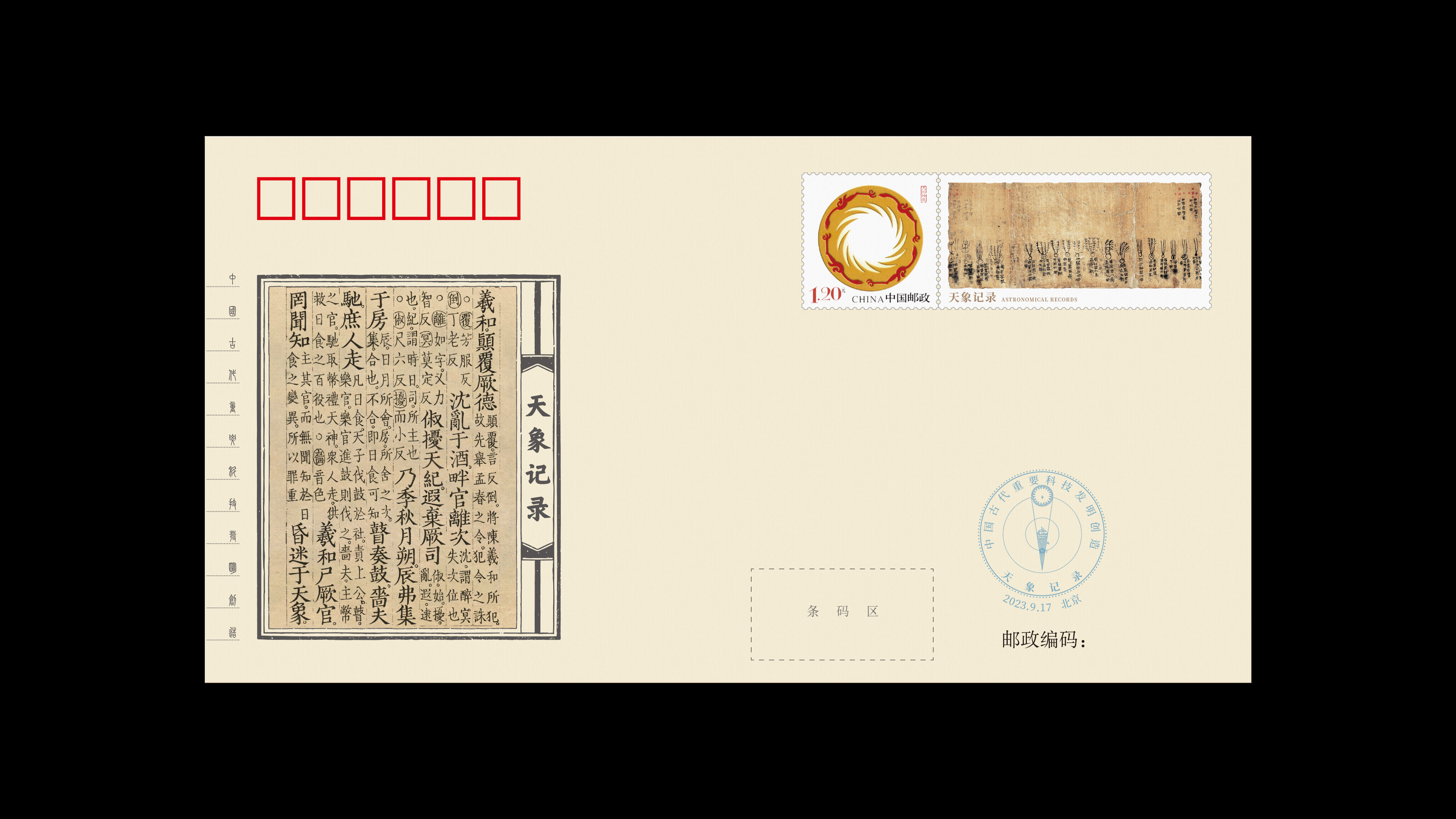 中国古代诸多科技发明创造,为人类文明发展作出了巨大贡献。为此,中国集邮有限公司发行中国古代重要科技发明创造纪念封第二辑共9枚,展现古人的巧思天工。 天象泛指各种天文现象,如天体出没、月球盈亏、日月交食、行星冲合、流星闪逝、彗星隐现、新星爆发、陨星坠落等。中国古代对天空中出现的各种天象非常重视,近代之前中国人一直是世界上最勤勉、最精确的天文观测者。历朝历代都有官方专职人员日夜不停地观天测候,为后世留下了丰富的天象记录,这些天象记录被视为全人类珍贵的科学遗产。中国古代的天象记录中,最有价值的是涉及日月食、彗星、太阳黑子、新星等的资料。史书中彗星、流星、新星等记录的详细程度和精确程度,可使现代人根据这些记录精确地确定其位置、亮度和运动变化过程,很多记录对现代天文学研究具有非常高的应用价值。