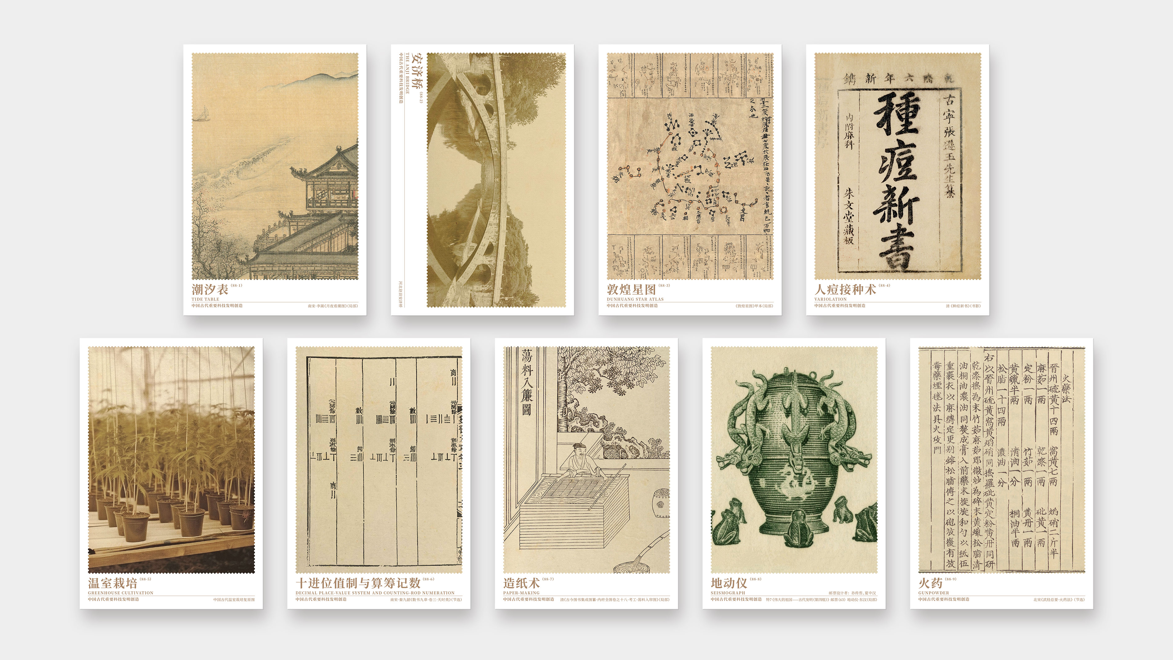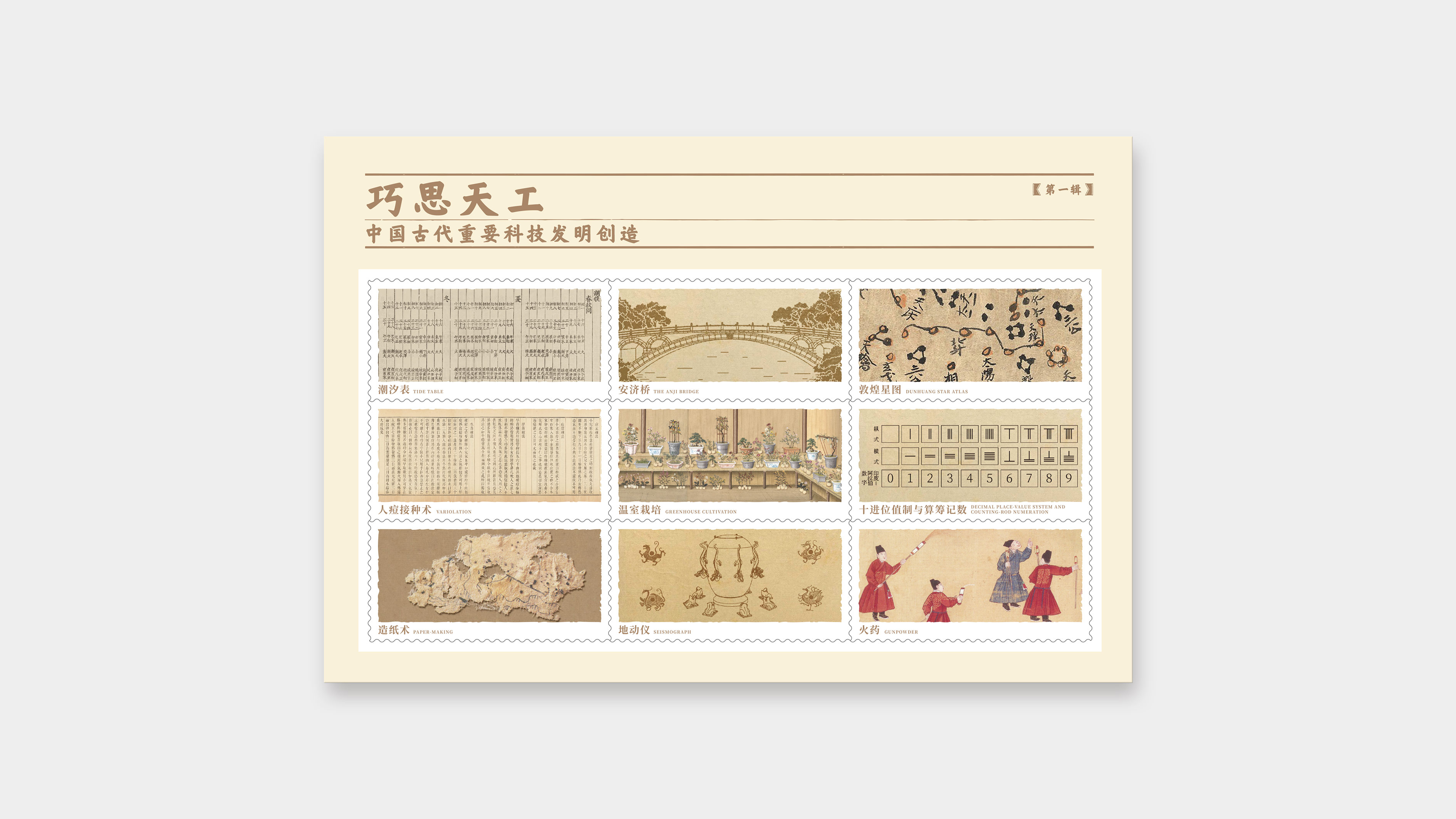 为丰富产品类别,配合各地销售网点集邮开展互动活动,自第五辑起,增发明信片产品。每一辑独立外包装,可成套销售也可单枚零售。中国集邮有限公司于2024年11月29日发行《巧思天工——中国古代重要科技发明创造》明信片第一辑共九枚。