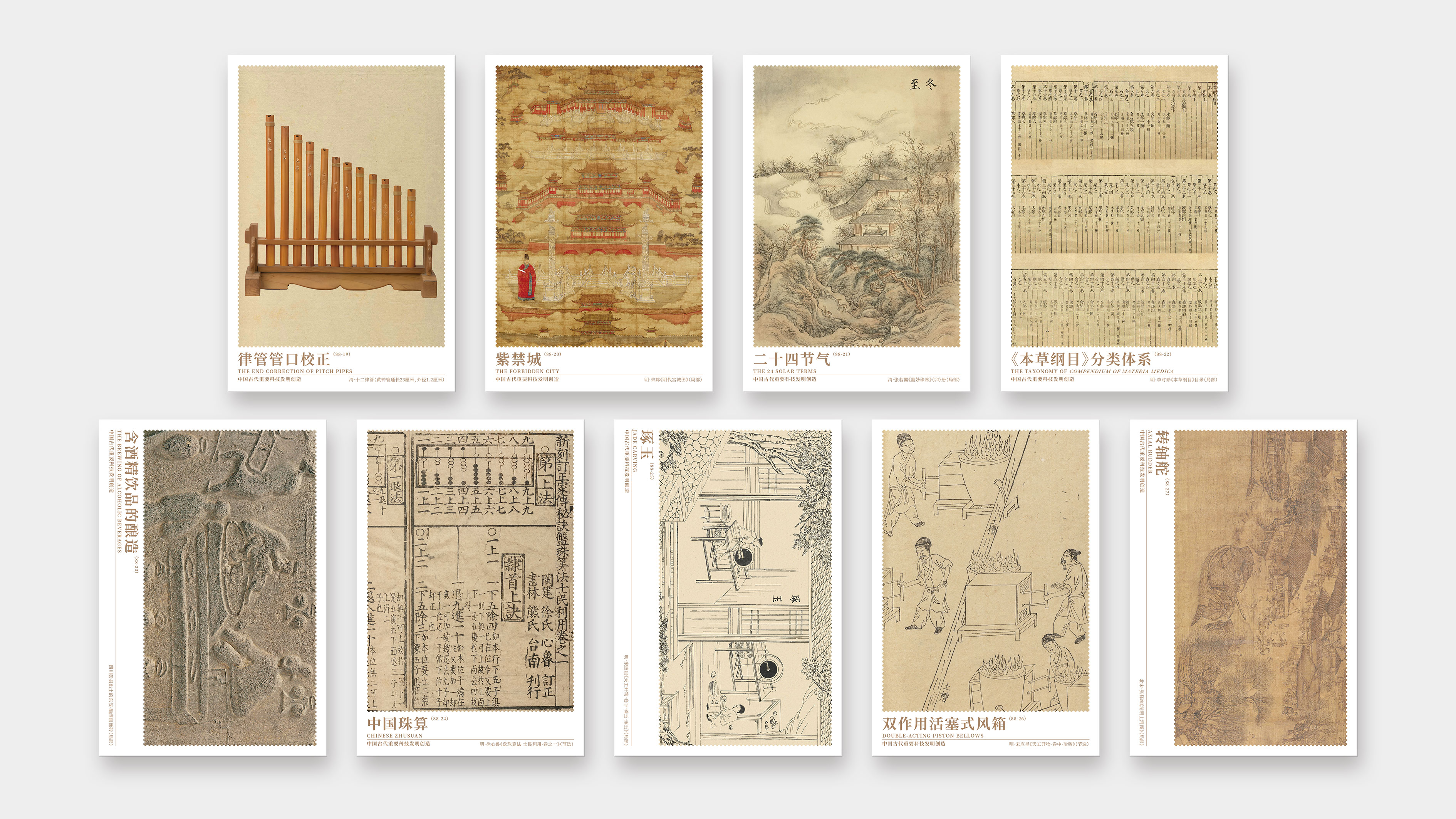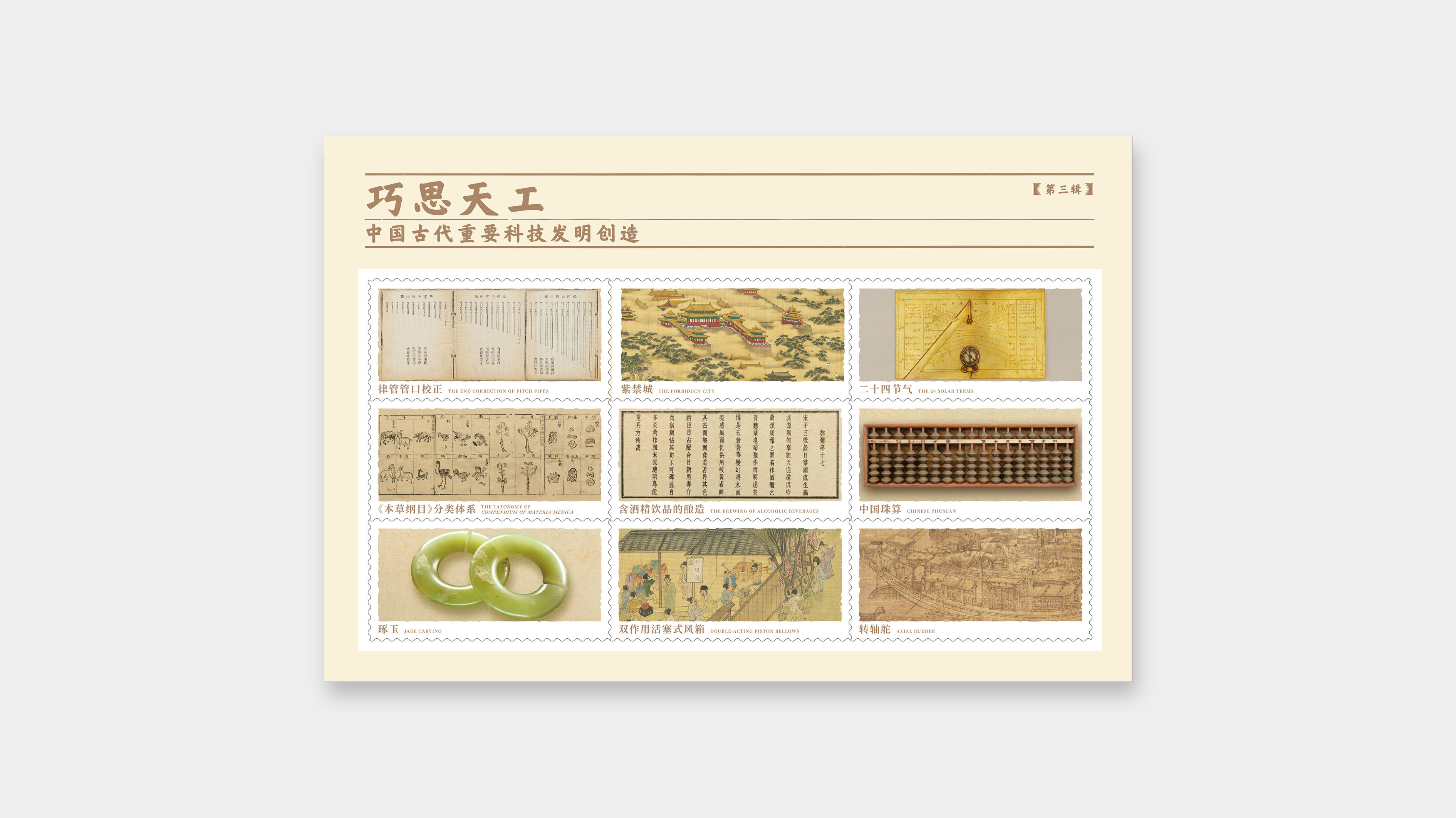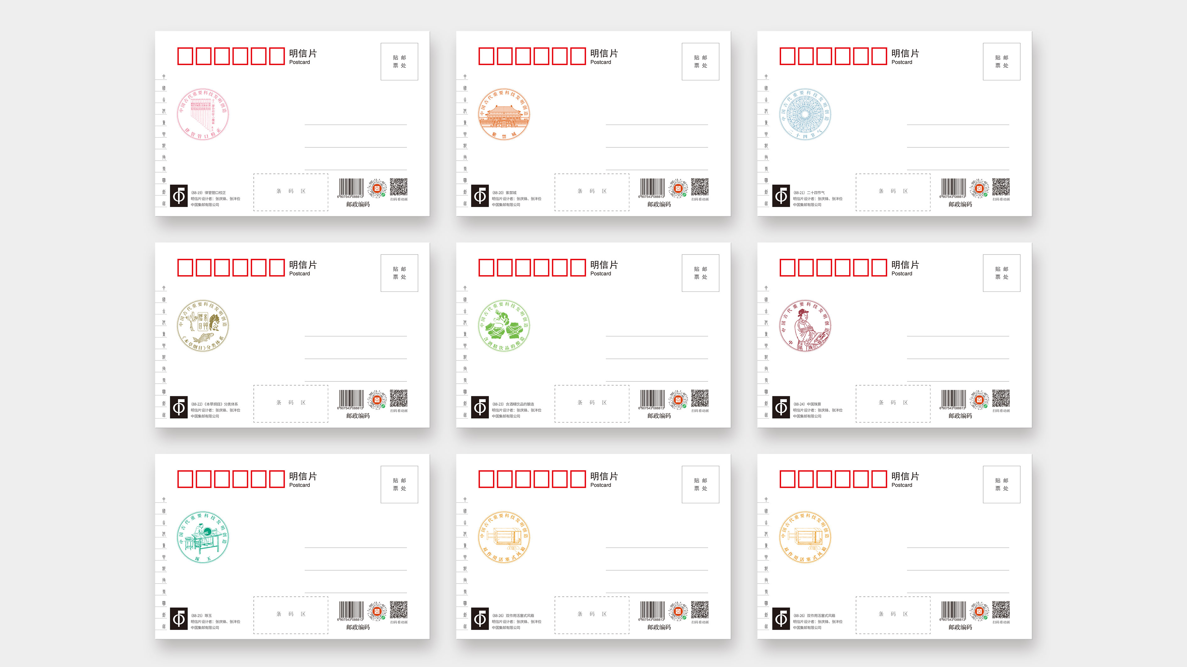 为丰富产品类别,配合各地销售网点集邮开展互动活动,自第五辑起,增发明信片产品。每一辑独立外包装,可成套销售也可单枚零售。中国集邮有限公司于2024年11月29日发行《巧思天工——中国古代重要科技发明创造》明信片第三辑共九枚。