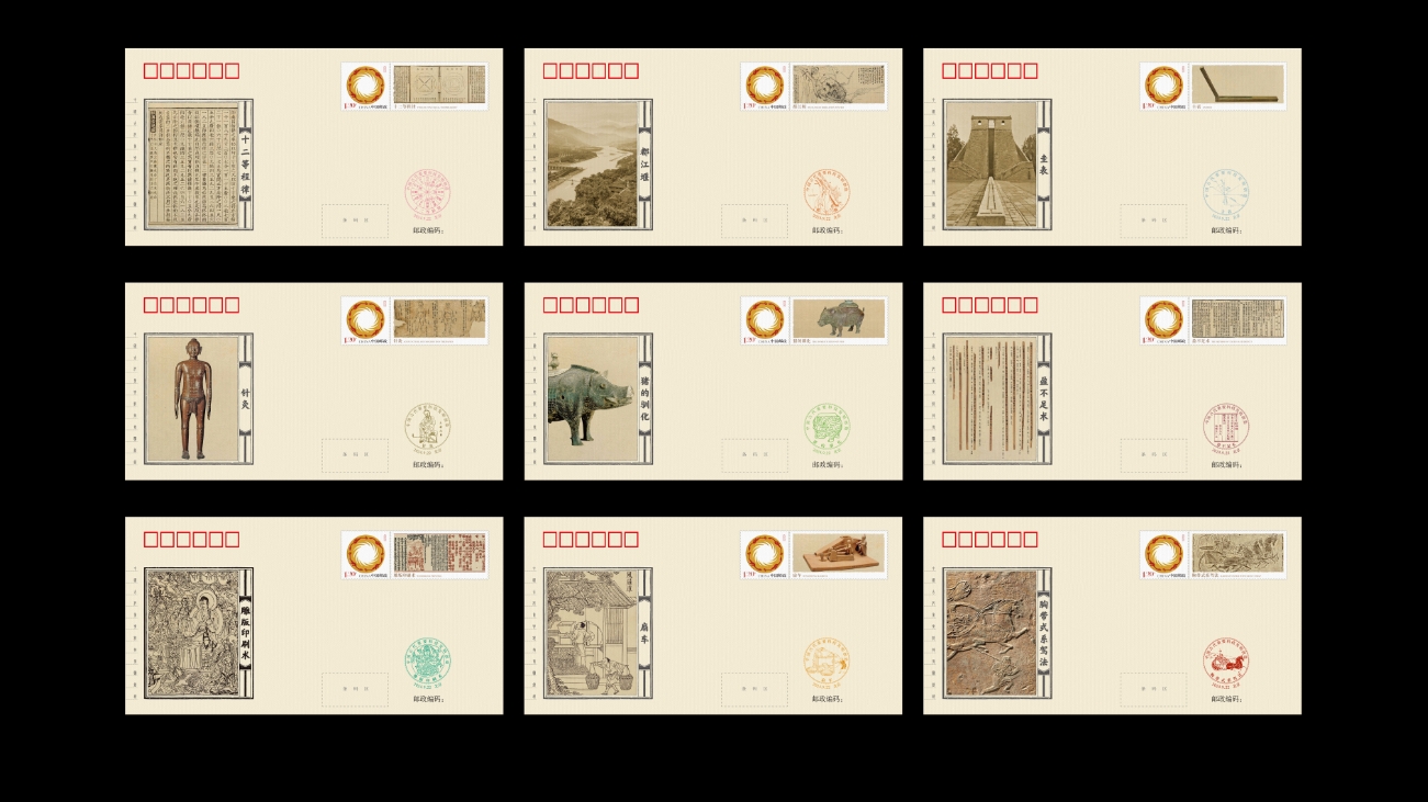 4、每枚纪念封通过主图、邮戳、个性化邮票三个方面直观表现一个或多个科技成果,同时为了实现对这些古代科技成果的更好的说明和表现,我们在纪念封里增加一张设计精美的“说明书”。