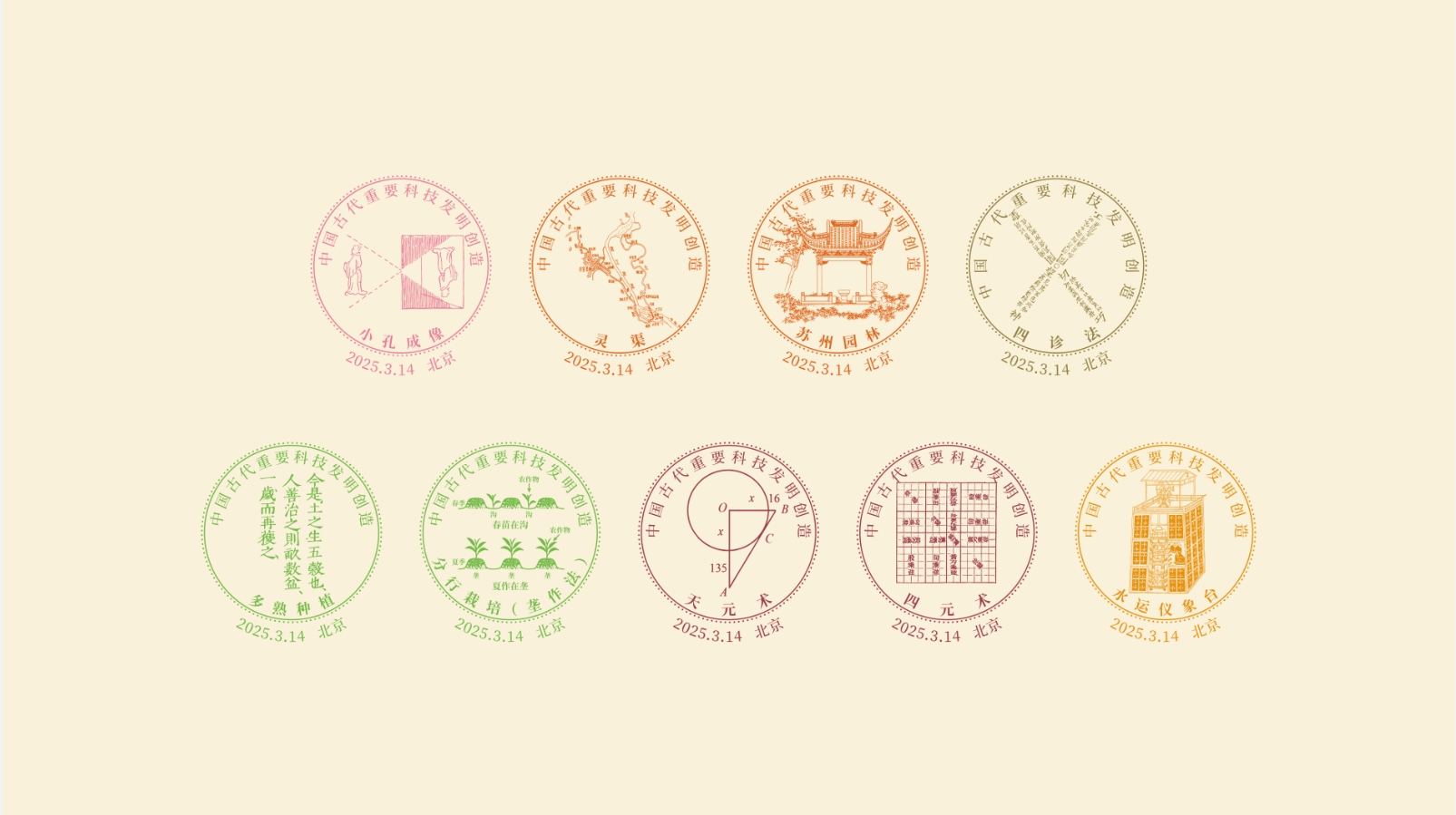 中国集邮有限公司于2025年3月14日发行《巧思天工——中国古代重要科技发明创造》纪念封第七辑共九枚。