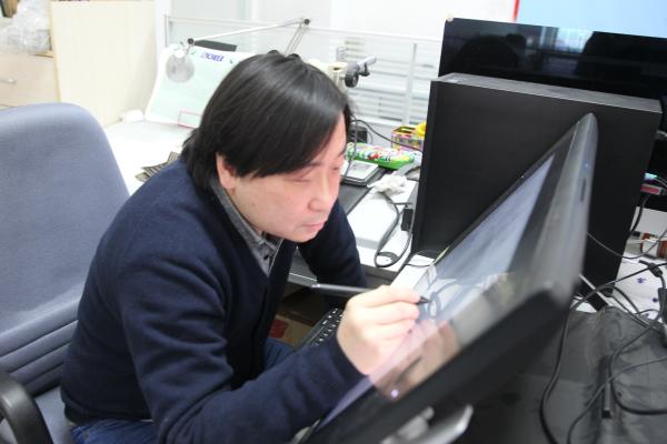 在雕刻布线上首先考虑到整幅画的前后关系,线条上近实远虚,远处用点表现马的躯干,近处则用较实的线条勾勒轮廓,体现出整幅画的空间感。