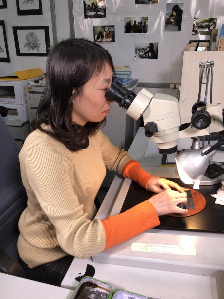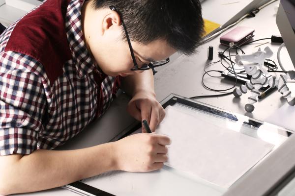 在雕刻创作时,着重体现线条的流畅和人物的表情,刻画时不能过重,要雕刻部分和彩色胶印部分相辅相成,画面中四个人形态各异,分量感不同,头发的走向各异,通过查阅大量白描书书籍及网络上的近代画工笔人物的资料寻找灵感,在创作时刻意加强了画面最前端人物的线条,彰显其体积感和层次感,充分运用了近大远小、近实远虚的创作手法,增强了空间感,并且把每个人的手势也进行了反复推敲,体现出人物的体貌及动态特征。