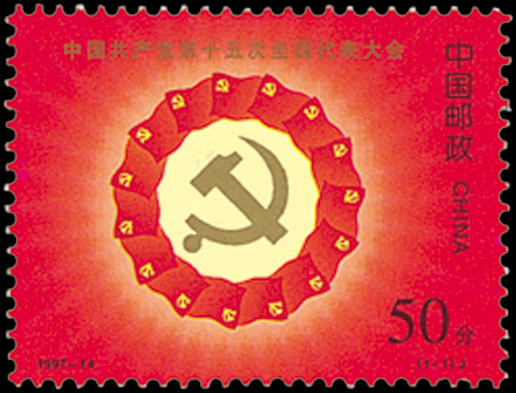 中国共产党第十五次全国代表大会于1997年9月12日至18日在北京召开。这次大会应到正式代表2048人、特邀代表60人(出席开幕式的代表和特邀代表2074人),代表了全党5800多万党员。该套邮票由于万新、陈晓聪设计,于1997年9月12日发行。