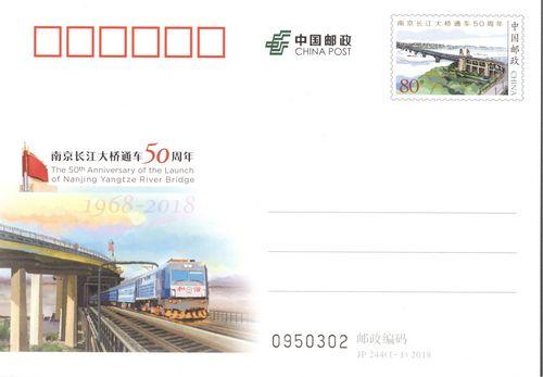 中国邮政定于2018年12月16日发行《南京长江大桥通车50周年》纪念邮资明信片1套1枚。详情如下: