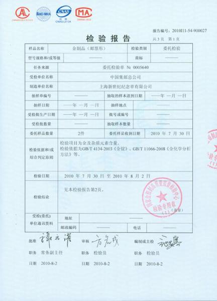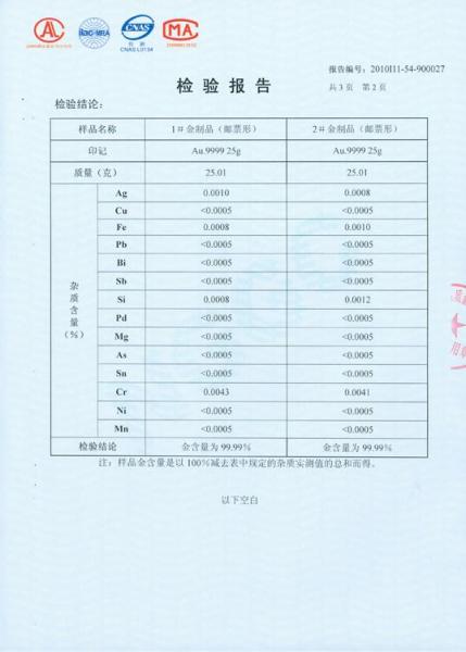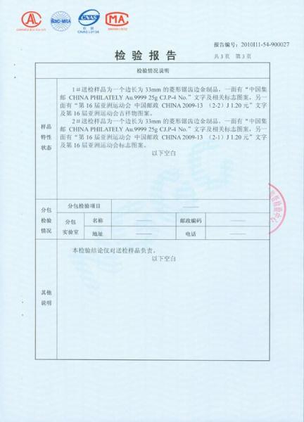 >首页>集邮信息>产品证书(历史)>《第16届亚洲运动会会徽和吉祥物》邮票金砖检验报告