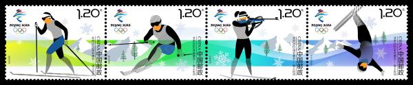 这套邮票共四枚,分别表现了“越野滑雪”“高山滑雪”“冬季两项”和“自由式滑雪”等冬奥会雪上运动项目。作为设计师,必须要了解相关的运动资料、实景录像、比赛的基本规则和内容,使脑海中形成初步直观的印象,这样才能把运动的独特美感表达出来。之后就要选择这四枚邮票主题内容也就是四个运动项目的动作姿态,每个项目比赛过程中都有不少瞬间图片,都各具特色动感十足。动作的确定还要考虑票形,运动员的图形有时候是左右宽,有时候是上下高,四枚票是横票还是竖票,最好倾向于一致。四枚邮票并排在一起,视觉上应该有一种前后连贯、空间互补的感觉。总之这是一个不断纠结的过程,有些动作可能反复调整好几次。