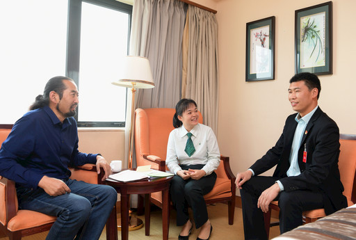 柴闪闪向其美多吉、韦艳梅分享作为全国人大代表在履职过程中的开心事儿。