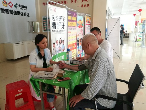 武汉市黄陂区双凤邮政营业所与口腔医院开展异业合作。医生在代发养老金的高峰期为客户免费测量血压,并赠送客户洗牙、拔牙优惠券。左春卉  摄