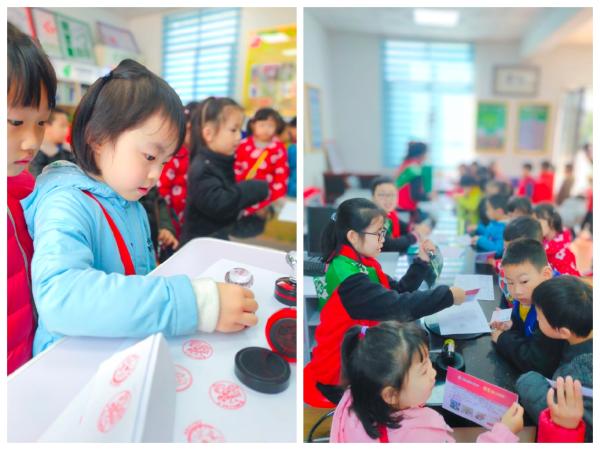 (麓枫少年邮局的学生教幼儿园孩子盖邮戳)
