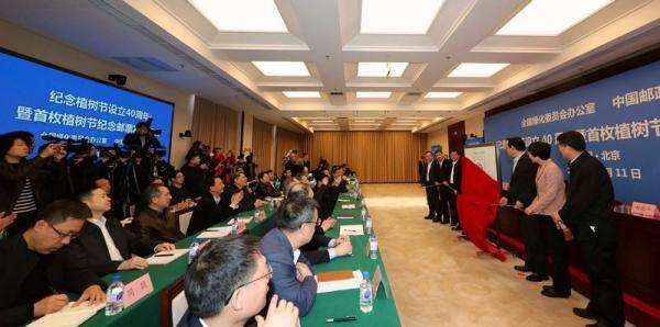 3月11日,中国邮政集团公司与全国绿化委员会办公室在京共同举办纪念植树节设立40周年暨首枚植树节纪念邮票发布仪式,并现场签署合作框架协议。双方此次合作,旨在贯彻落实党中央关于建设生态文明、推进国土绿化工作的决策部署,以植树节设立40周年为契机,通过发行纪念邮票、倡导义务植树等形式,树立和培养广大公众生态文明理念,鼓励和引导社会各界参与国土绿化行动。 全国绿化委员会、国家邮政局、中国邮政集团公司相关领导和嘉宾出席了发布仪式,并为首枚植树节纪念邮票揭幕(见图)。