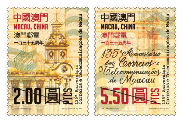 澳门邮电局3月1日将发行《澳门邮电一百三十五周年》邮票1套2枚及小型张1枚。