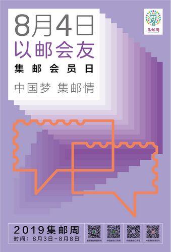 8月3日至8月8日,中国邮政集团公司和全国集邮联将联合举办“2019集邮周”活动。此次集邮周活动将延续“中国梦 集邮情”的主题,在6天的时间里,以集邮与旅游、集邮会员日、集邮与少年、集邮与文脉、集邮与爱情、集邮与生肖为主题开展不同的主题日活动。