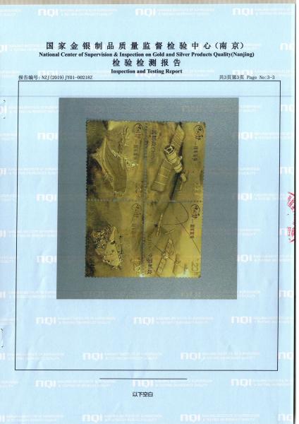 《中国梦——国家富强》邮票金检测报告