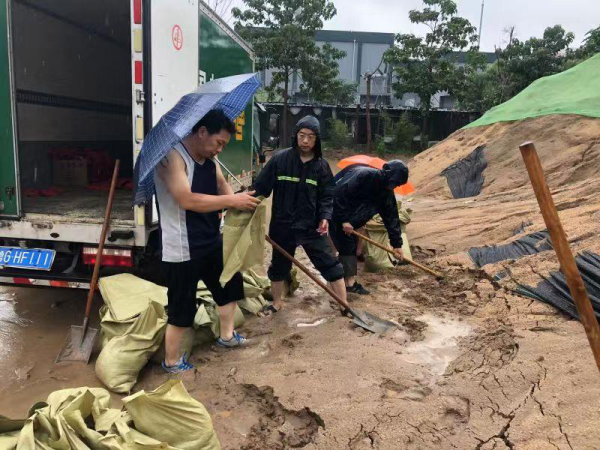寿光分公司义务为受灾严重的地区装防汛沙袋。