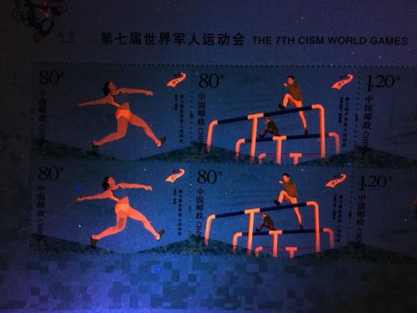 邮票上呈现的精彩项目,不仅是衡量各国军队战斗力的一种标志,更是对每个军人发起的挑战,都体现精度和速度方面的竞争。“质量时限,不讲条件”,《军运会》纪念邮票的印制生产,也是一项邮票人在速度、质量和精度上的技术性作战项目。每一枚邮票的精雕细琢,都离不开邮票人将无限的热情倾注于每一分钟的印制工作当中,始终保持强烈的使命担当和高度的政治责任感,保质、保量、保时限,圆满完成生产任务。