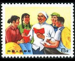 和贫下中农在一起学习毛主席著作,8分。