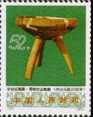 编77,52分,图案为“彩绘红陶鼎”,1974年4月在山东邹县城南野店村原始社会晚期遗址出土,属于中期大汶口文化。
