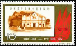 (287) 4分 第一次党代会会址(上海) 500万枚 (288) 8分 南昌“八一”大楼 800万枚 (289)10分 中央大礼堂(瑞金) 400万枚 (290)20分 延安宝塔山 300万枚 (291)30分 北京天安门 150万枚 1961.7.1。影写版。P11.5。52mm×31mm。50(5×10)。[G]。孙传哲。北京邮票厂。