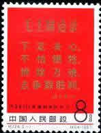 (404)为“毛主席语录”。图案为毛泽东语录:“下定决心,不怕牺牲,排除万难,去争取胜利”。金字红底,气氛庄重。