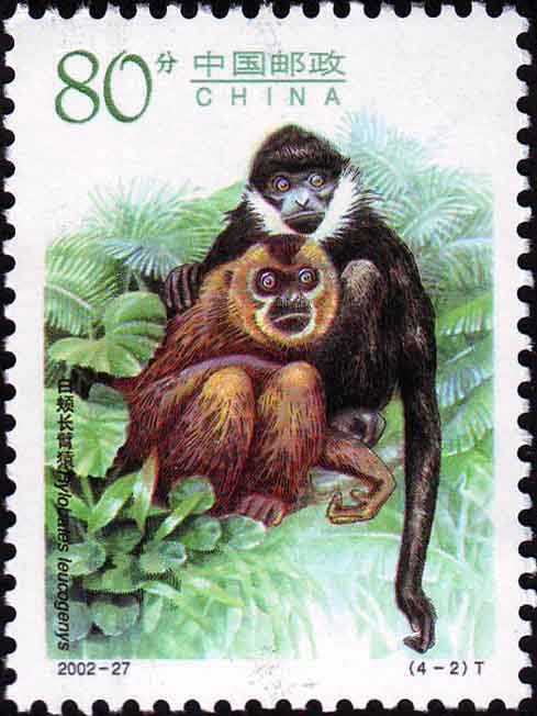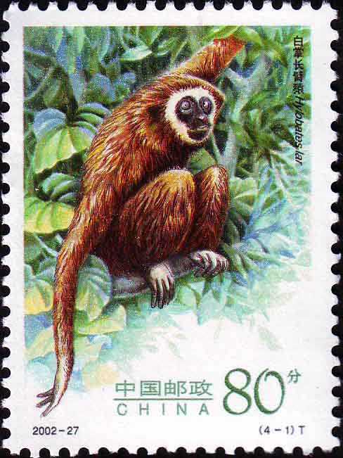 2002年特种邮票《长臂猿》国家邮政局2002年12月7日发行《长臂猿》特种邮票1套4枚。