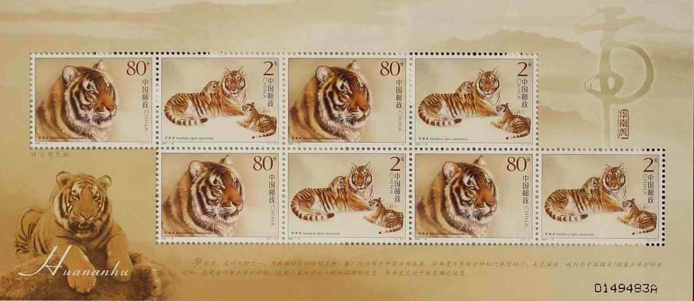 国家邮政局2004年8月23日发行《华南虎》特种邮票1套2枚。
