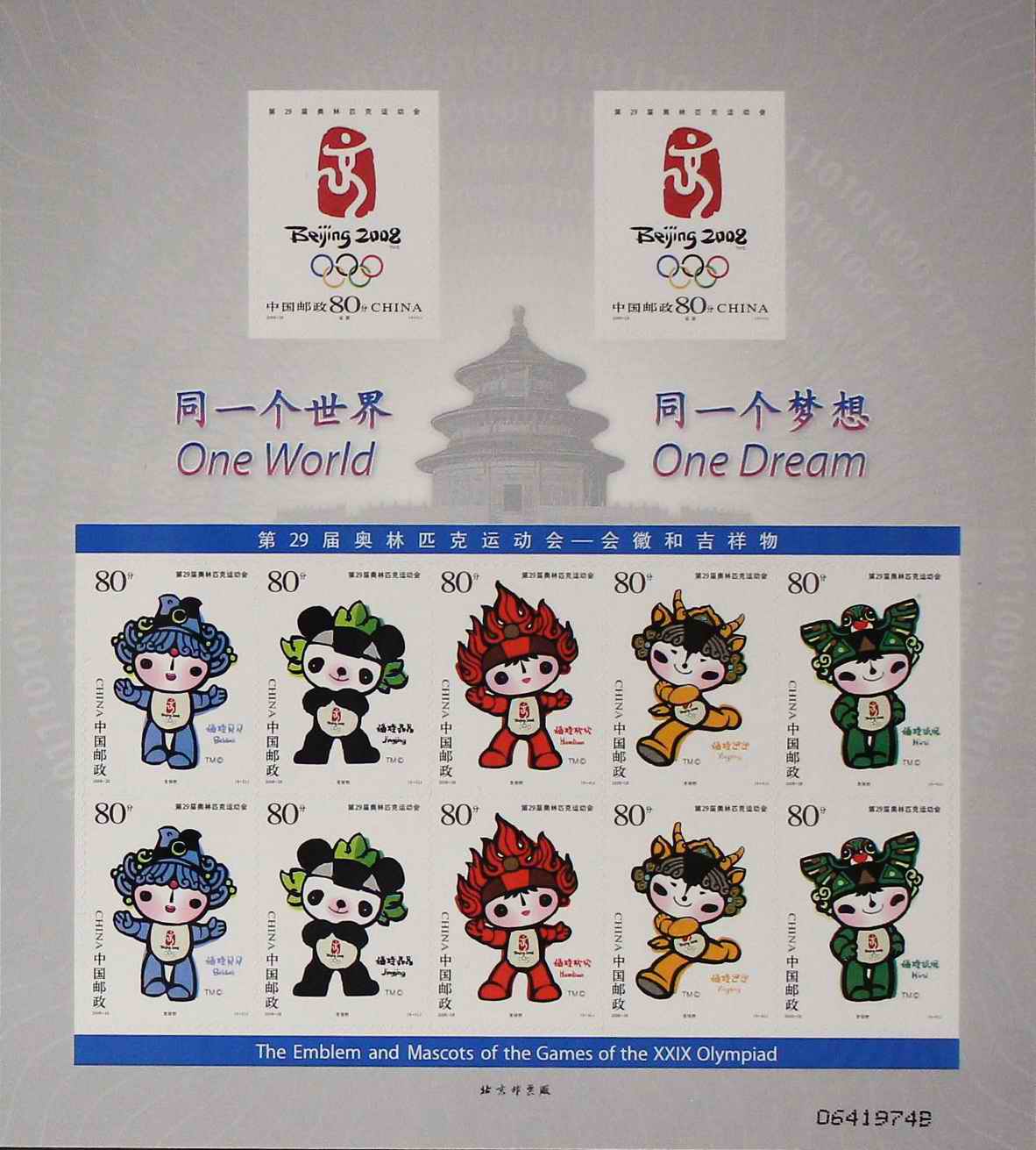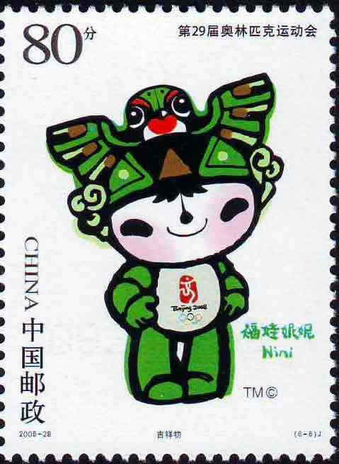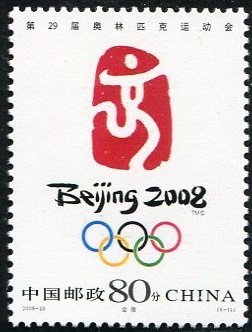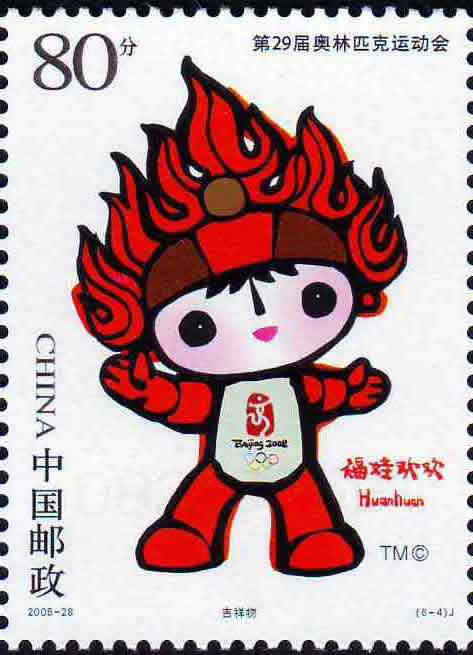 国家邮政局2005年11月12日发行《第29届奥林匹克运动会——会徽和吉祥物》纪念邮票1套6枚。