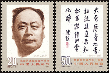 1991年第12届优秀纪念邮票《陈毅同志诞生九十周年》