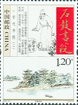 P.S. 《古代书院(二)》特种邮票全套四枚,分别为江苏泰州的安定书院、湖南衡阳的石鼓书院、江西铅山的鹅湖书院、海南儋州的东坡书院,由我国当代国画大师范曾和邹玉利共同设计。1998年4月,国家邮政总局曾经发行《古代书院》特种邮票,分别为:应天书院、嵩阳书院、岳麓书院、白鹿书院。