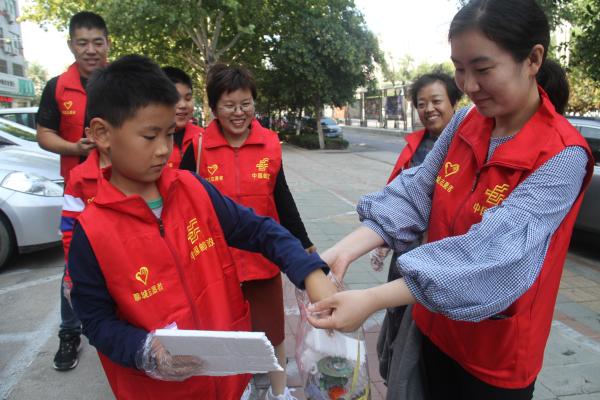 9月21日是第十一个世界清洁日。聊城市分公司组织志愿者服务队利用周末时间到街头捡拾和清理垃圾。许多员工将自家孩子带来一同参与活动,志愿者们认真捡拾垃圾,向路人讲解垃圾分类小知识。