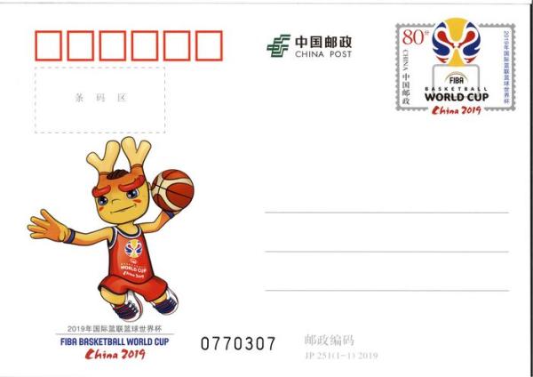 中国邮政于2019年8月31日发行《2019年国际篮联篮球世界杯》纪念邮资明信片1套1枚。详情如下: