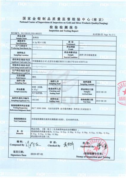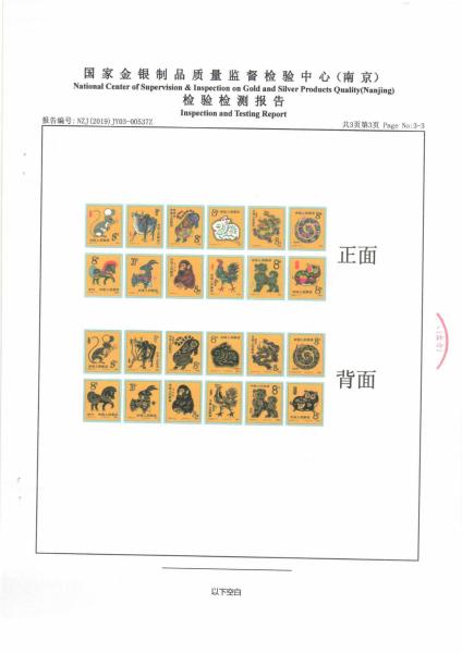 国金黄金——《第一轮十二生肖邮票纯金纪念珍藏版》质检报告(金)