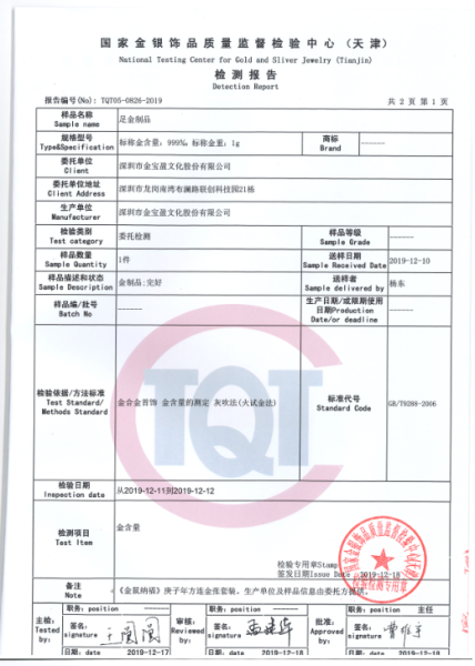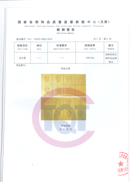 >首页>集邮信息>产品证书(历史)>《金鼠纳福》庚子年方联金张套装检测报告