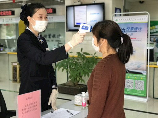 口罩遮住了她们那上扬的嘴角,却挡不住温暖的双眸以及声声亲切的问候。尚处于哺乳期的邮储银行福建省东山县支行大堂经理彭拓华在疫情防控期间仍坚持上岗,每天到岗后的第一项任务便是配合网点人员对营运办公场所进行全面消毒。营业开始后,她和同事用微笑耐心服务每一位客户,细心为每一位进入网点的客户测量体温,温馨提示客户不聚集、分开坐,耐心指导客户办理柜面业务,把好营业网点的“第一道防线”,也让前来办业务的客户放心。□许芙蓉  摄影报道