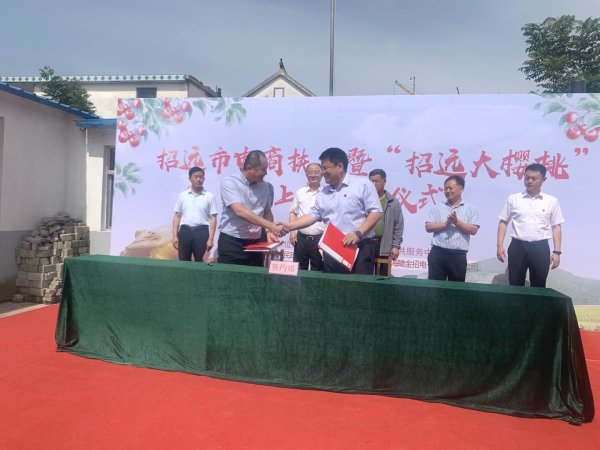 6月11日上午,招远市邮政分公司参加了“招远市电商扶贫暨‘招远大樱桃’上线签约仪式”。该分公司与市电子商务公共服务中心现场签订协议,将与政府共启“电商+党支部领办合作社+邮政”的扶贫惠农模式,全力打造“邮政惠农扶贫”公益品牌,推进“邮政在乡·快递下乡”的提档升级,着力实现从单一“寄”包到“产”包的转变,为此次樱桃线上销售提供寄递服务,贡献邮政绿色力量。
