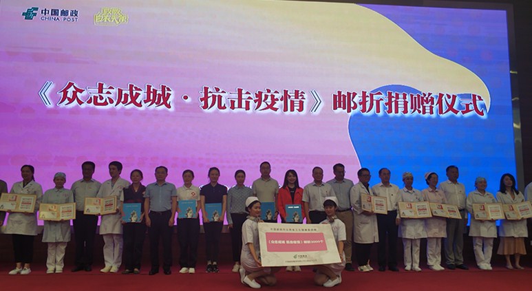 活动中还举行了《众志成城?抗击疫情》邮折捐赠活动,一直以来,中国邮政坚持以发行邮票的方式纪念、支援国家发生的重大灾害、重大疫情,并将邮票发行收入捐献用于救灾抗疫。此次中国邮政将向中国红十字会总会捐赠邮票和邮品收入2800万元,向奋战在抗击疫情一线的近30万名医务工作者捐赠价值1500万元的定制邮折,共计4300万元。这是近年来中国邮政发行抗疫救灾邮票捐赠额最高的一次。本次捐赠仪式上,中国邮政集团有限公司云南省分公司向云南省卫生健康委捐赠《众志成城 抗击疫情》邮折3000个。